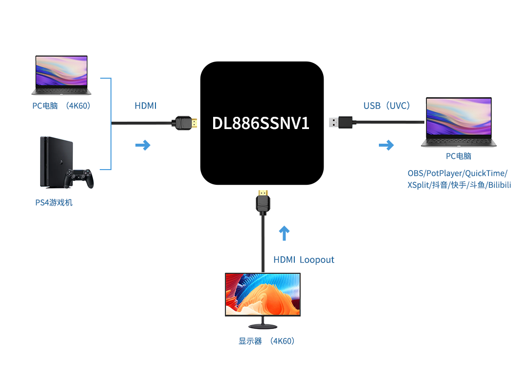 L886SSNV1 带环出4k60 HDMI视频采集盒